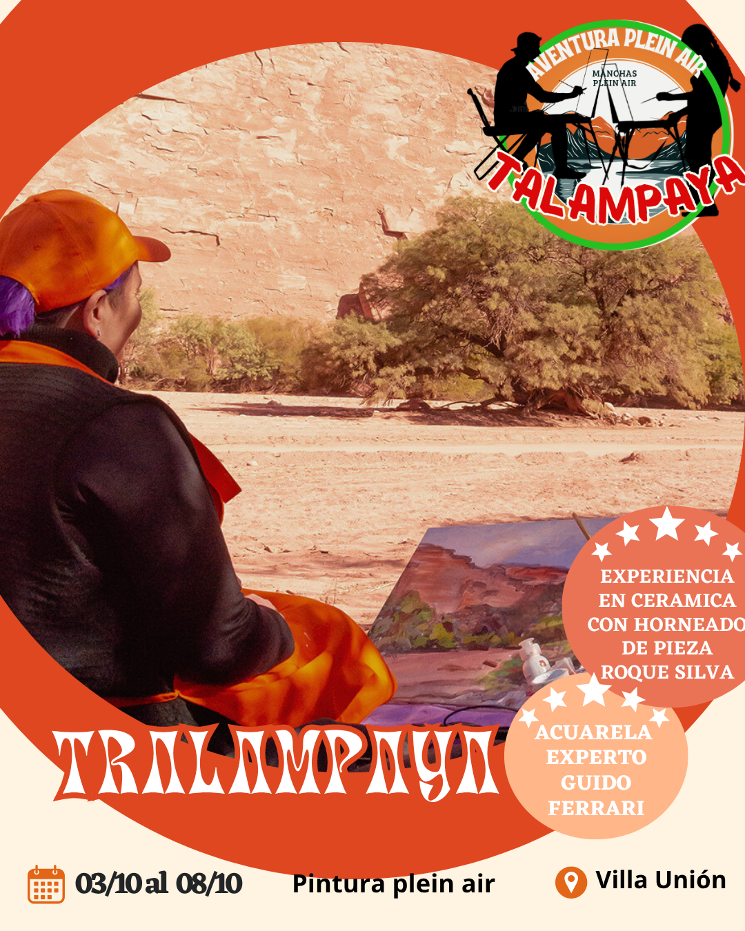 En un grupo reducido de 15 artistas, exploraremos técnicas de pintura al aire libre, con talleres guiados por reconocidos docentes y artistas locales. Además, disfrutarás de excursiones únicas a parques nacionales como Talampaya, Ischigualasto y Chiflón, donde la inspiración se encuentra en cada rincón.